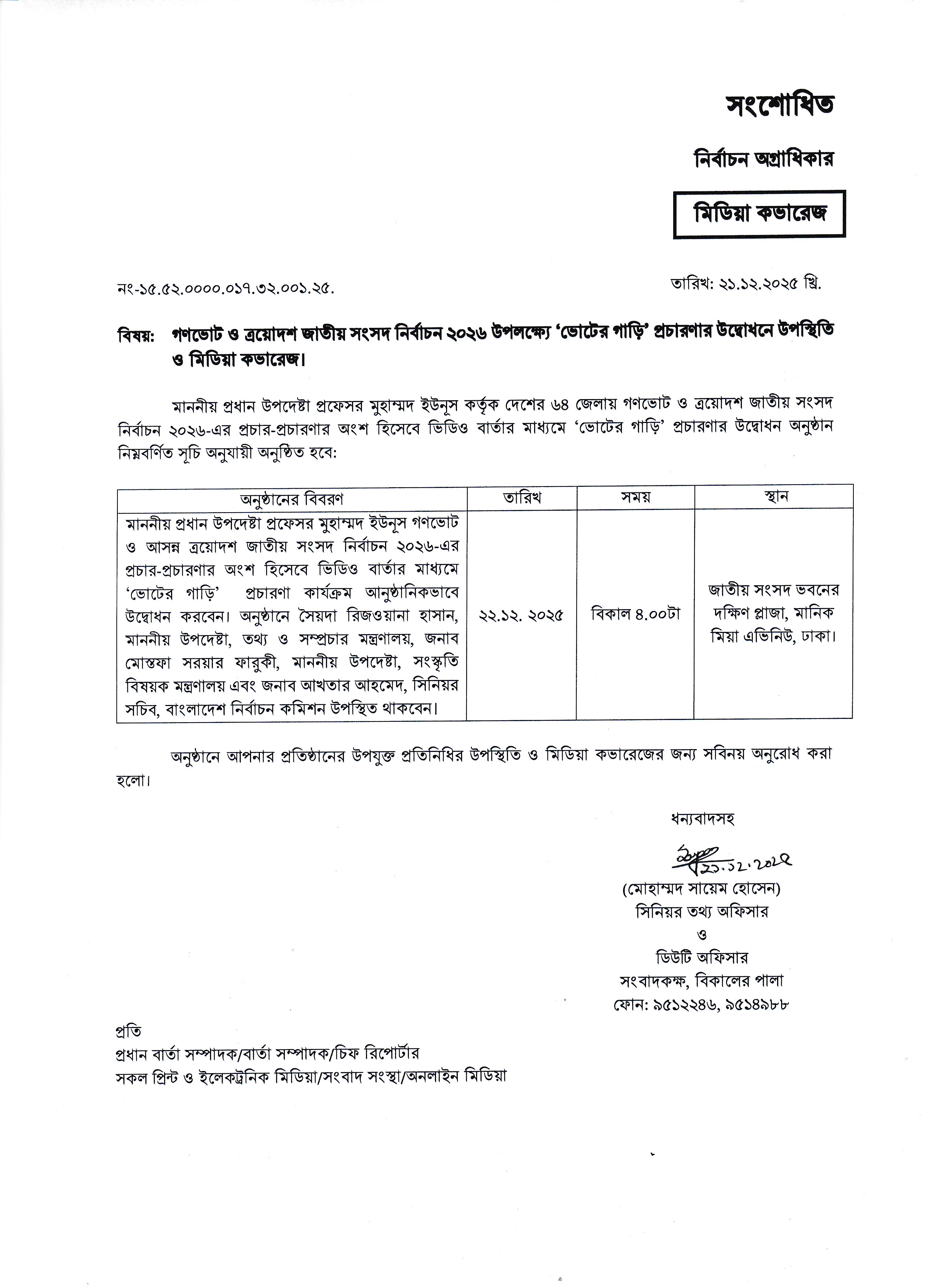 কন্টেন্ট: নোটিশ প্রকাশের তারিখ: ২১-১২-২০২৫ আর্কাইভ তারিখ: ০৮-০১-২০২৬