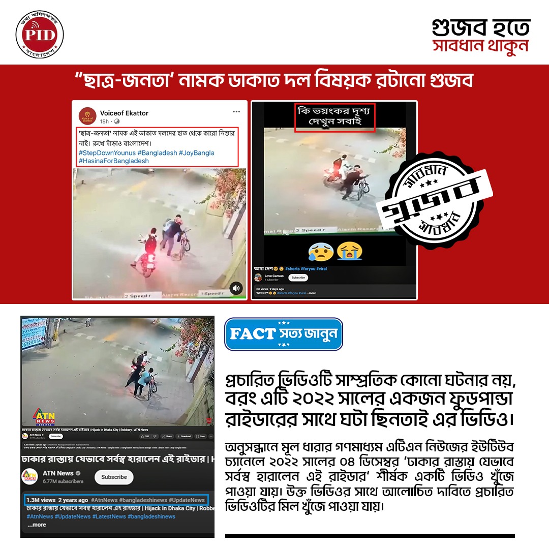 | ০৯/০৩/২০২৫ | 'ছাত্র-জনতা' নামক ডাকাত দল বিষয়ক রটানো গুজব | |