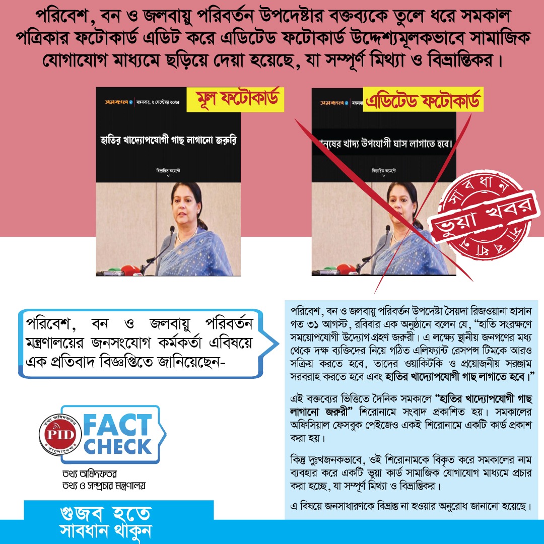 | ০৪/০৯/২০২৫ | পরিবেশ, বন ও জলবায়ু পরিবর্তন উপদেষ্টার নামে ভূয়া ফটোকার্ড সংক্রান্ত | আইকনোটেক্সট |