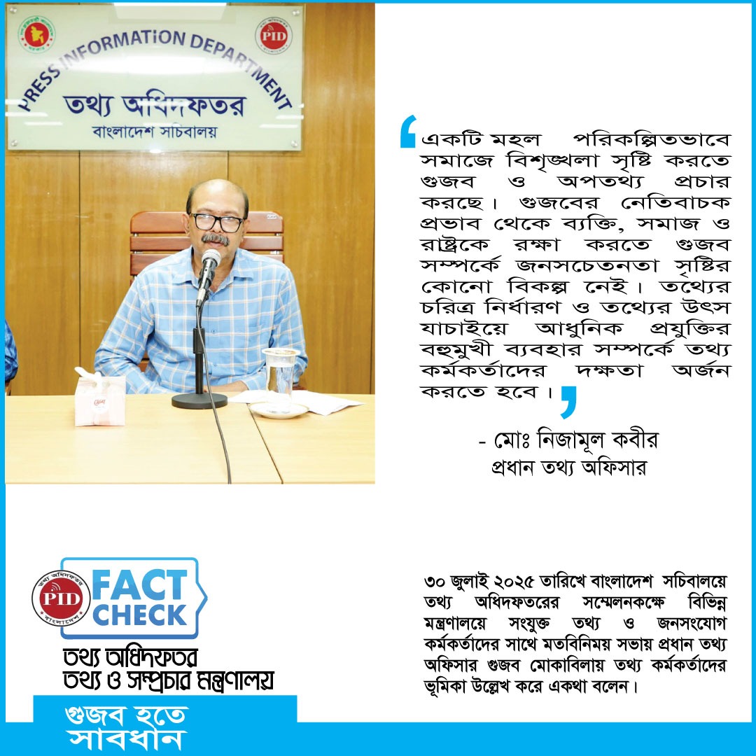 | ৩১/০৭/২০২৫ | গুজব মোকাবিলায় প্রধান তথ্য অফিসারের আহ্বান | আইকনোটেক্সট |