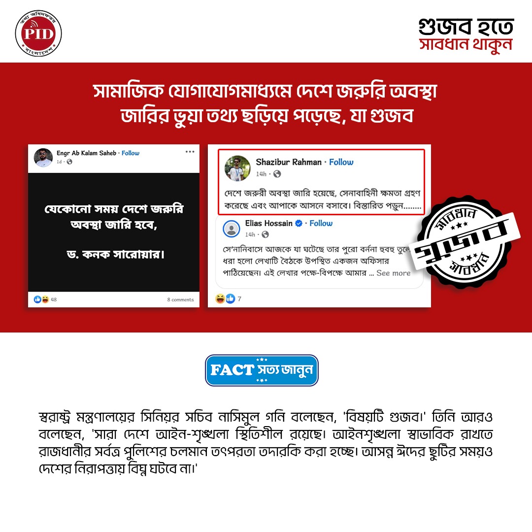 | ২৫/০৩/২০২৫ | দেশে জরুরি অবস্থা জারি সংক্রান্ত গুজব | |