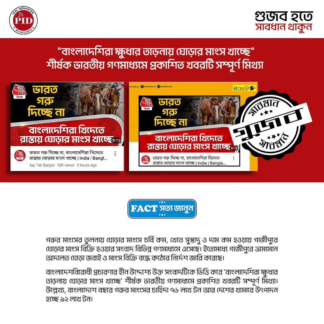 | ২০/০৩/২০২৫ | ঘোড়ার মাংশ সংক্রান্ত গুজব | |