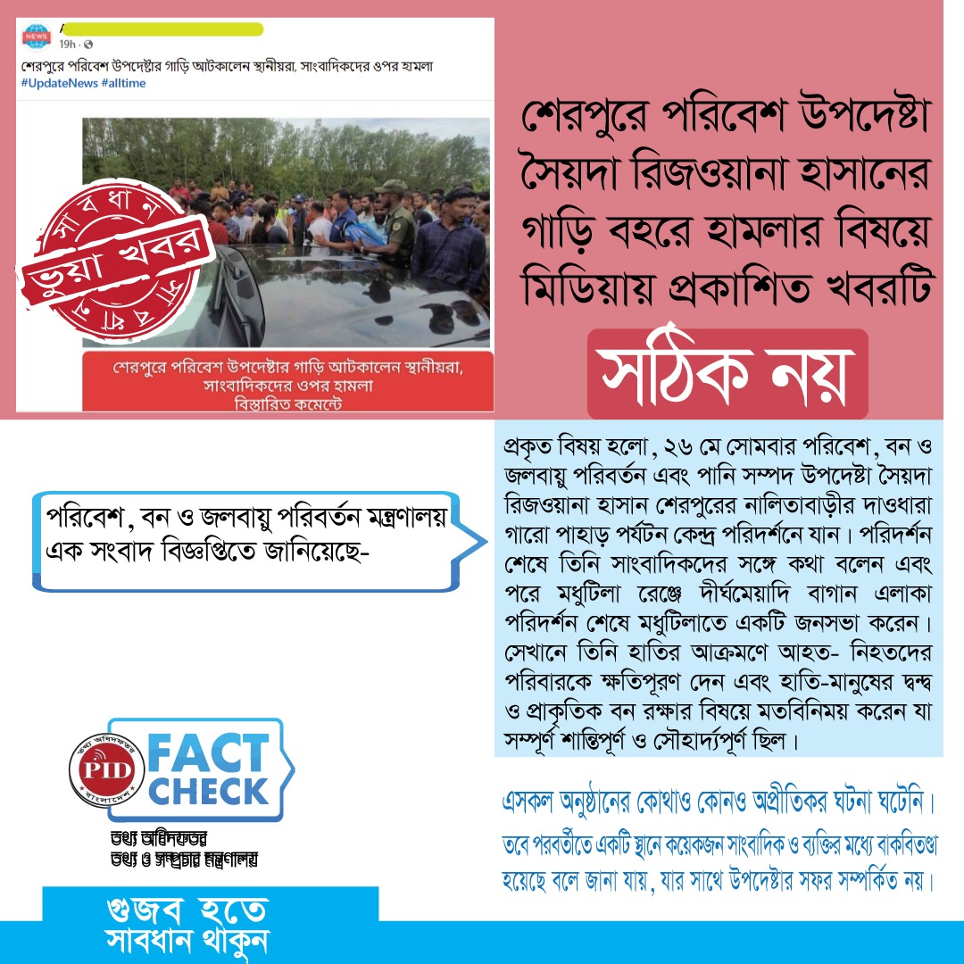 | ২৭/০৫/২০২৫ | পরিবেশ উপদেষ্টার গাড়ী বহর ঘিরে প্রচারিত গুজব | |