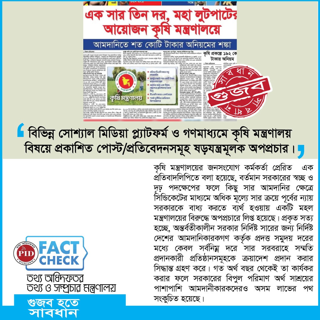 | ১৫/০৯/২০২৫ | কৃষি মন্ত্রণালয়ের বিরুদ্ধে ষড়যন্ত্রমূলক অপপ্রচার | আইকনোটেক্সট |