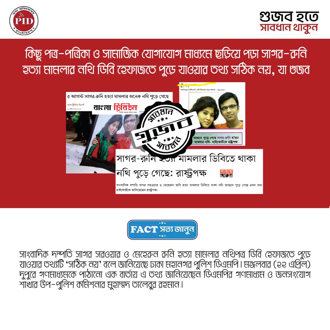 | ২২/০৪/২০২৫ | সাগর-রুনি হত্যা মামলার নথি সংক্রান্ত গুজব | |