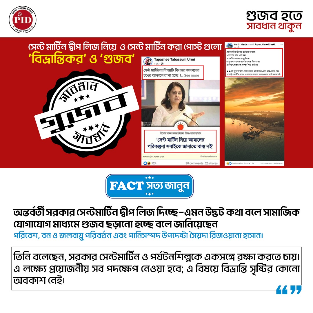 | ০৬/১১/২০২৪ | সেন্ট মার্টিন দ্বীপ লিজ নিয়ে গুজব | |