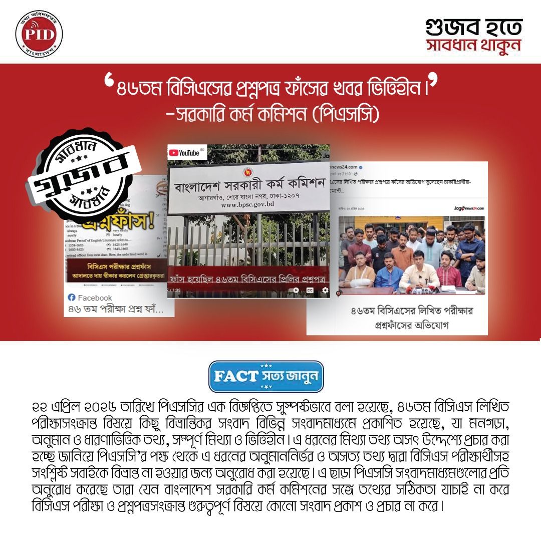 | ২৩/০৪/২০২৫ | ৪৬তম বিসিএস প্রশ্ন ফাঁসের গুজব | |