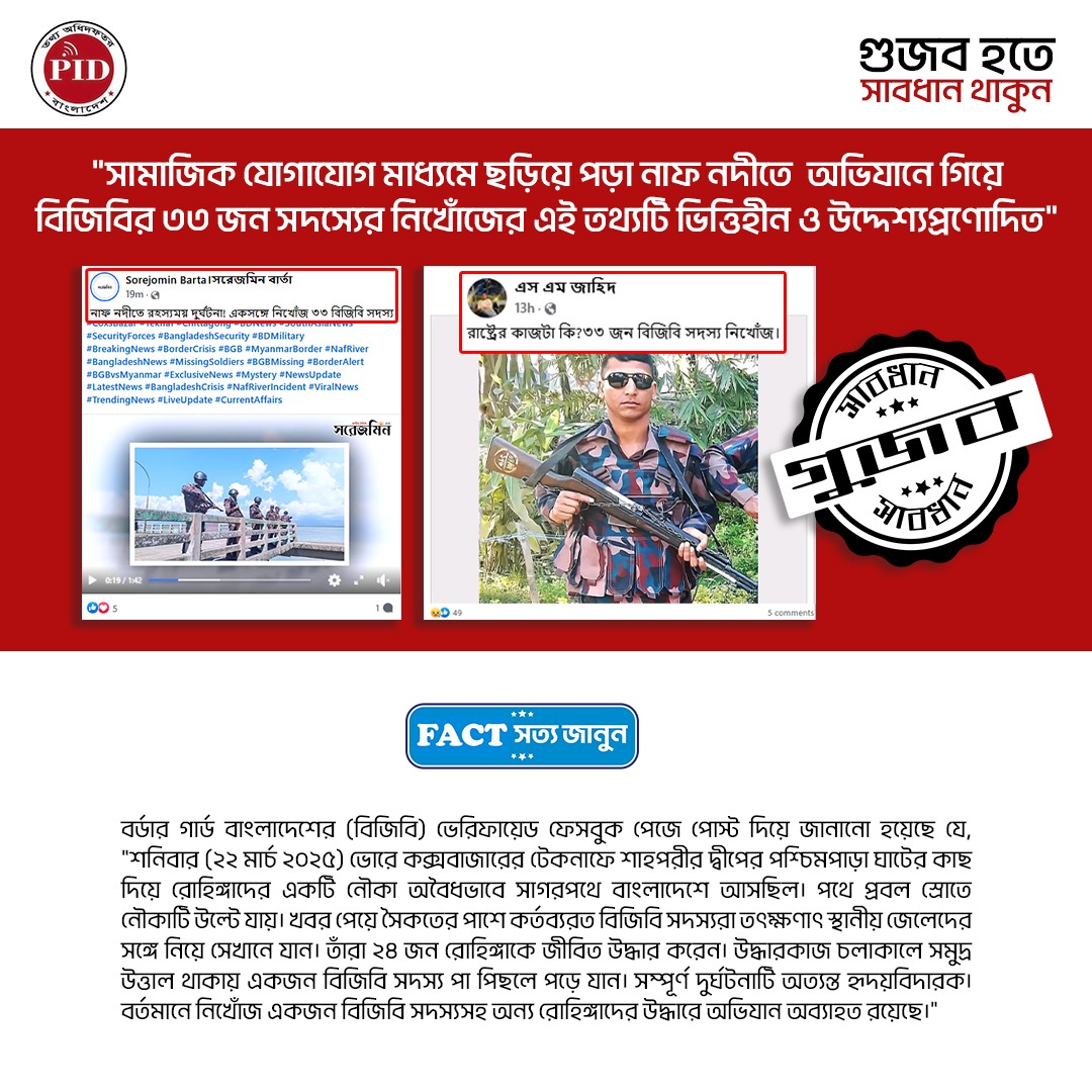 | ২৩/০৩/২০২৫ | বিজিবি সদস্য নিখোঁজ সংক্রান্ত গুজব | |