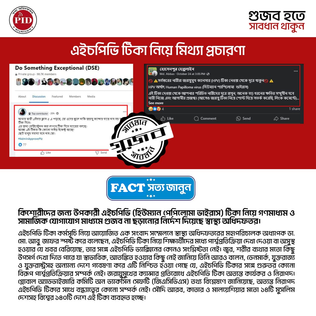 | ০৫/১১/২০২৪ | এইচপিভি টিকা নিয়ে গুজব | |