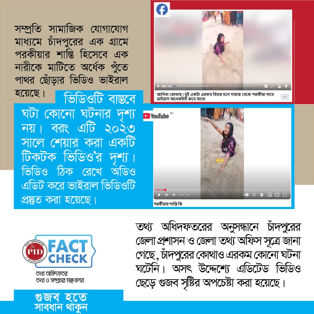 | ০৮/০৫/২০২৫ | টিকটিক ভিডিও পরকীয়ার শাস্তি হিসেবে প্রচারিত গুজব | |