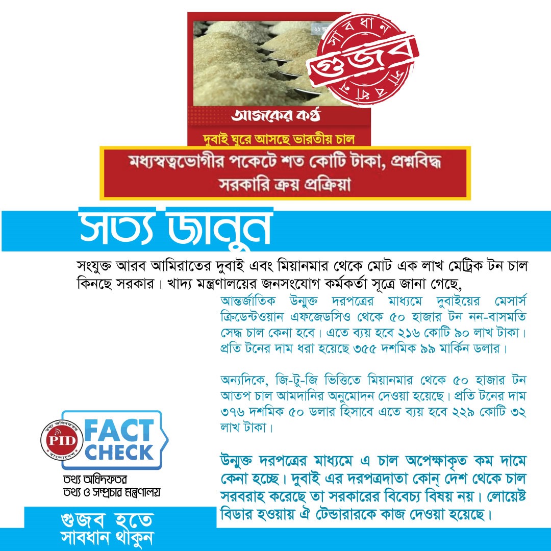 | ২৫.১০.২০২৫ | সংযুক্ত আরব আমিরাতের দুবাই এবং মিয়ানমার থেকে কেনা চাল নিয়ে প্রচারিত গুজব | আইকনোটেক্সট |
